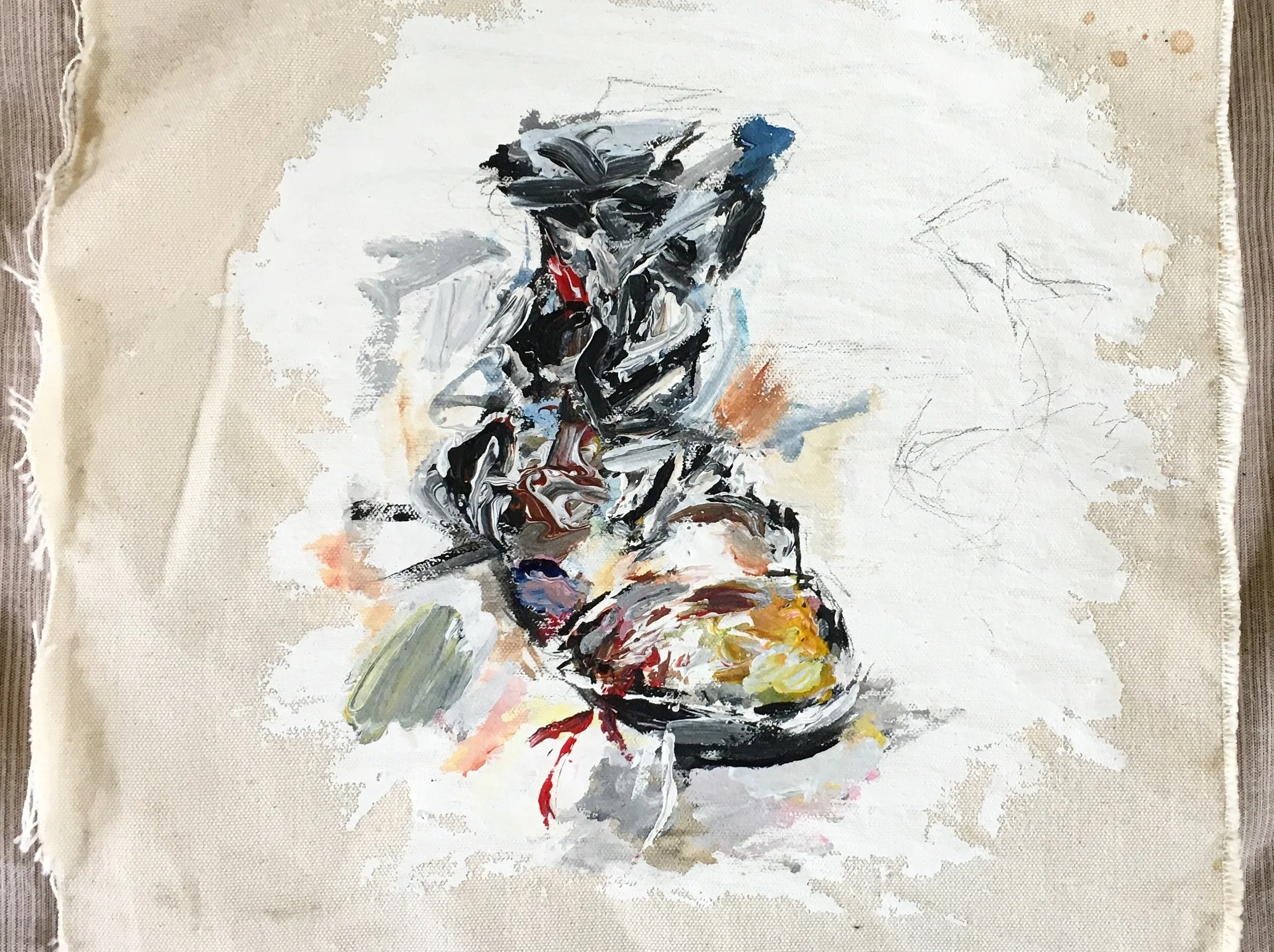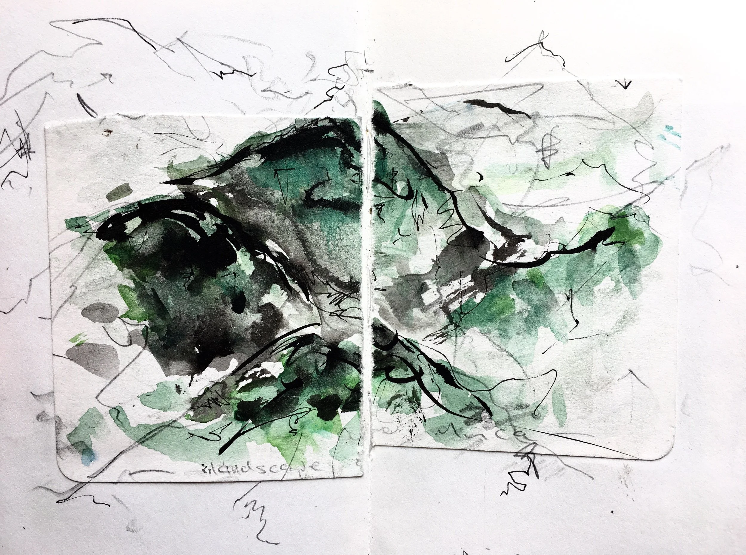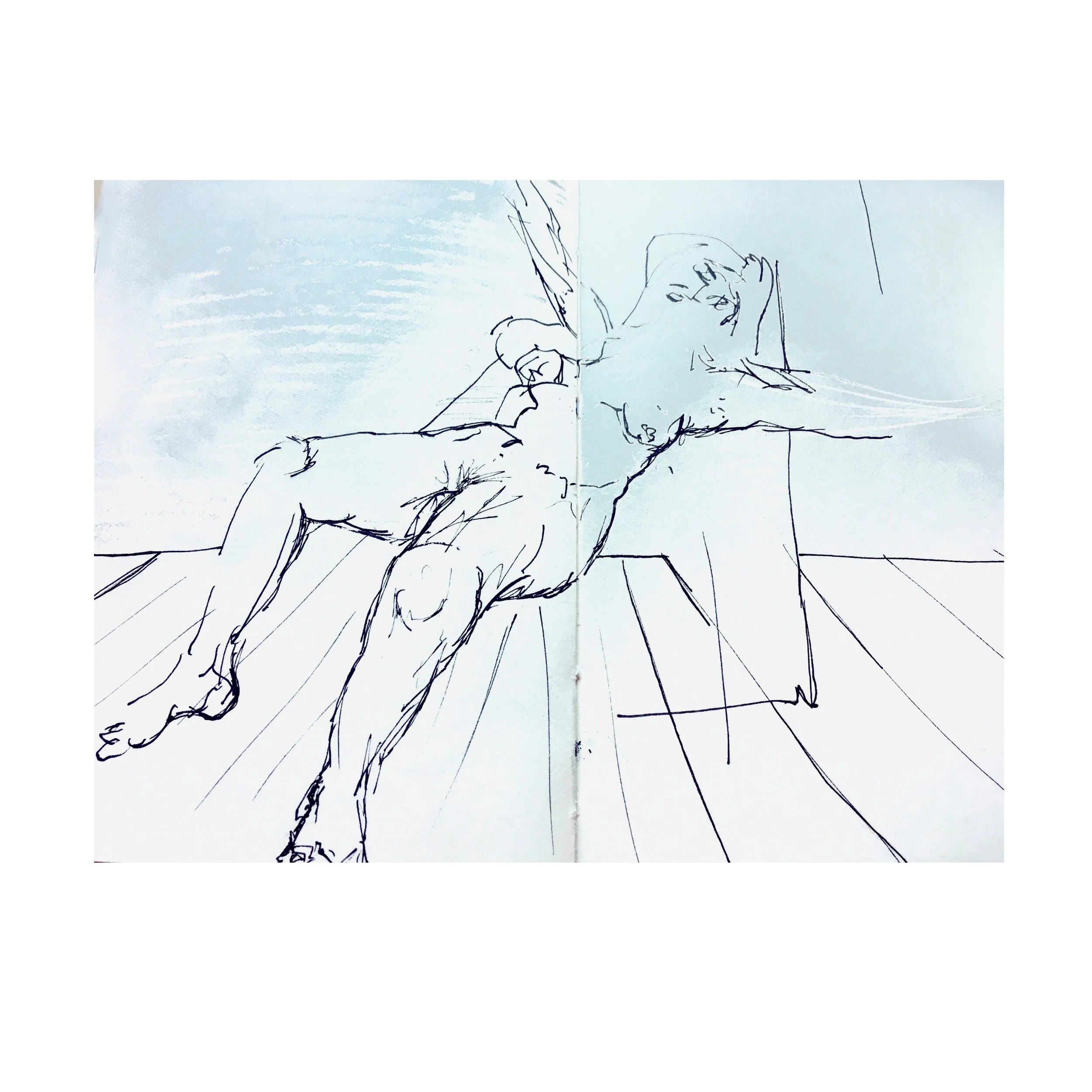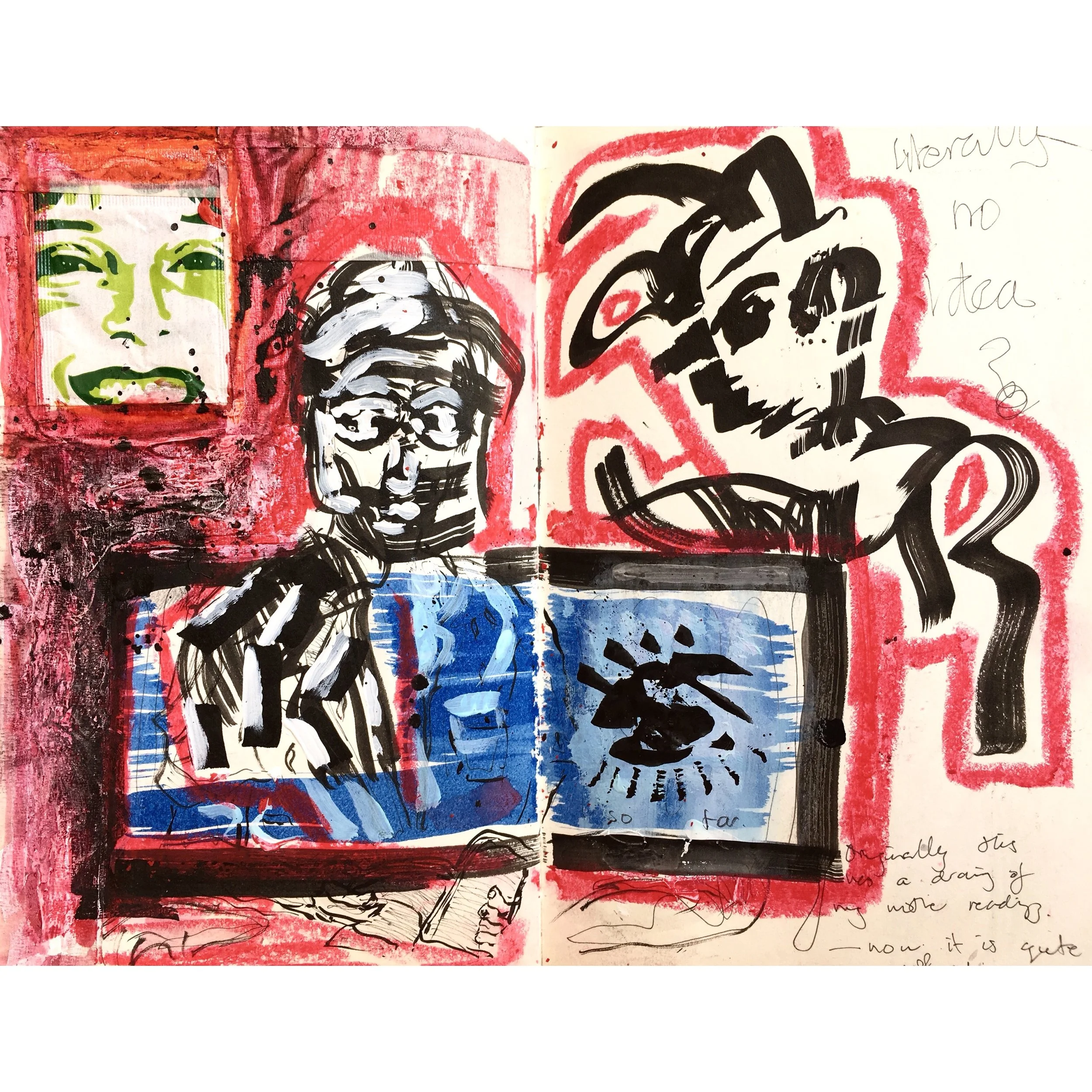 ‘originally this was a drawing of my mother reading’ - sketchbook page mixed media on paper